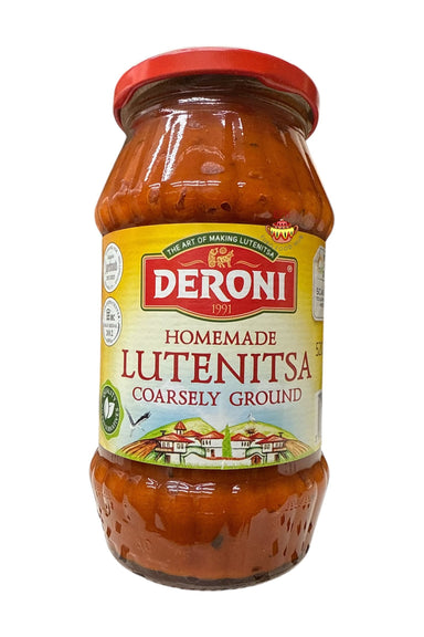 View full detailsHome made coarsely ground lutenitsa home made coarsely ground by Deroni. Traditional Bulgarian veggies spread made of grilled peeled red peppers, e...