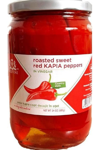 BELEVINI - Roasted Sweet Red KAPIA Peppers in Vinegar - 680g - Ardei Kapia copt decojit in otet cu drag din natura! Ingredients: roasted peeled wh...