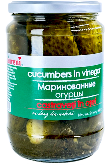 Cucumbers in Vinegar - RAURENI - Castraveti in Otet 680g Cucumbers - 6-9cm Ingredients: whole cucumbers (first quality), water, white wine vinegar,...