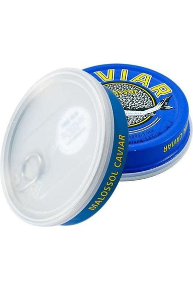 BLACK CAVIAR PIKE 100g metal tin Black pike caviar Ingredients: pike roe, salt, fd&c yel#5, red#40, blue#1&2 Net Weight 3.5oz/100g