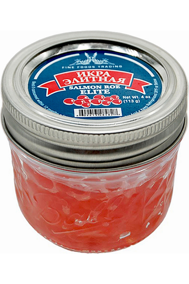 Elite SALMON Roe Caviar - 4oz IKRA ZLATNAYA - Salmon Roe ELITE Ingredients: salmone roe, salt, sorbic acid. Net Weight 4oz / 113g