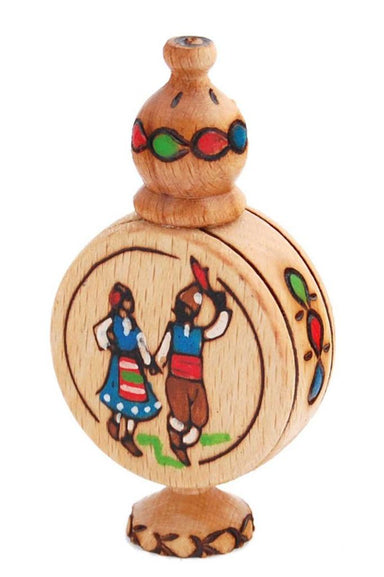 Bulgarian Rose Oil Souvenir in Wooden Casing - MUSKALCHE Each of these wooden casings is hand made with Bulgarian motifs painted on. Contains a vi...