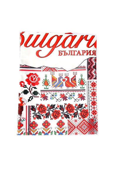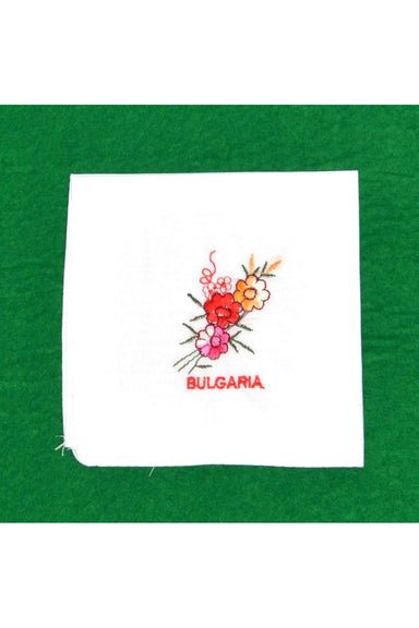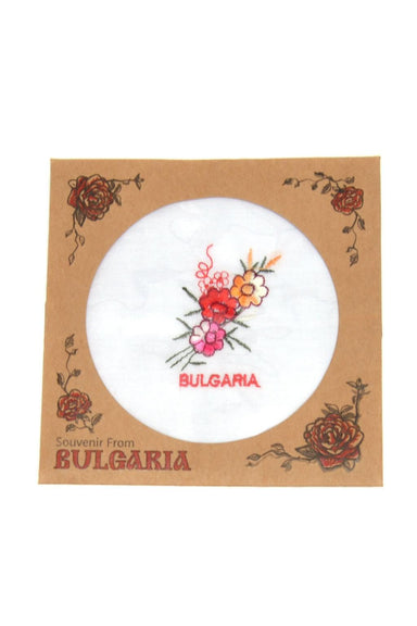Bulgarian Souvenir HANDKERCHIEF - Floral Souvenir handkerchief with decorative embroidery and the inscription Bulgaria. Comes in a thematic cardbo...