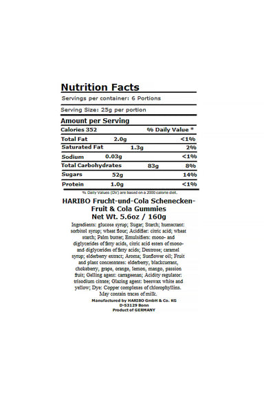 HARIBO - FRUCHT & COLA SCHNECKEN Gummies - 160G Colorful snails Snails have never disappeared faster. "Snail's pace" here means: If you want ...