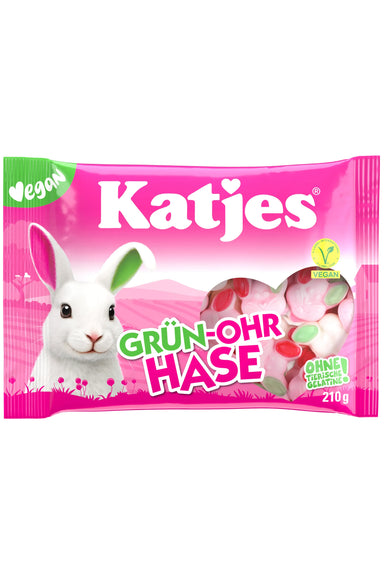 Katjes Green Ear Bunny - Gruen Ohrs Hase - Vegan Gummies - 175g VEGAN No ANIMAL Gelatin ONLY Natural Colors Katjes Green-Eared Bunny - Our fr...