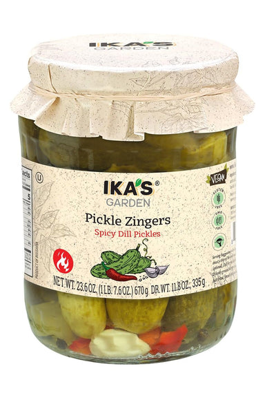 Pickle Zingers – Spicy Dill Pickles Ika’s Garden Pickle Zingers Spicy Dill Pickles 670g offer crisp, zesty pickles infused with bold spices...