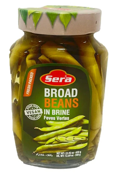 Sera - BROAD BEANS in Brine - BAKLA - 650g Ingredients: fresh broad beans, water, salt, dill, acidity regulator (citric acid). Net Weight 650g (dra...