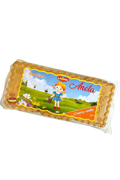 Laska - ANELA Cookies - CREAMY VANILLA - 375g Ideal accompany to your coffee or tea! Ingredients: first grade wheat flour, powdered sugar, palm oi...