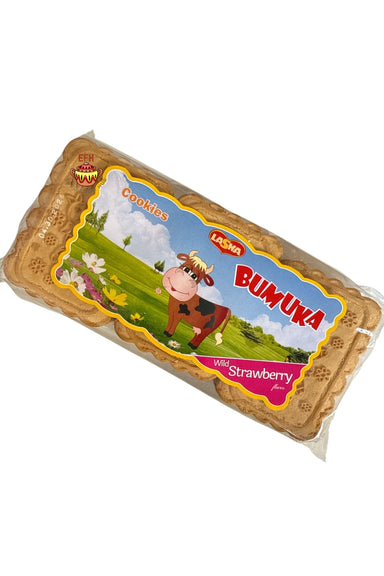 Laska - BUMUKA Cookies - Wild Strawberry Flavor - 375g Ideal accompany to your coffee or tea! Ingredients: first grade wheat flour, powdered sugar...
