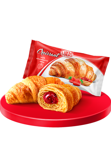 LUKAS - Croissant with STRAWBERRY Filling - 45g WE ARE EXPERTS IN CROISSANTS Just imagine: for our special recipe croissants we make a light ...