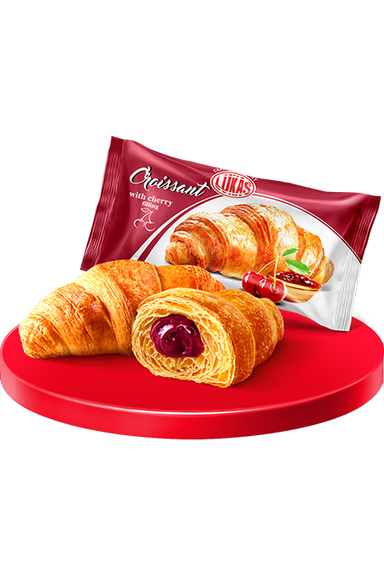 LUKAS - Croissant with CHERRY Filling - 45g WE ARE EXPERTS IN CROISSANTS By choosing this particular product from the Lucas croissant series,...