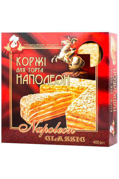 Cake Layers for NAPOLEON Cake - 400g Ingredients: wheat flour of the highest grade, margarine (bleached deodorized palm oil, refined deodoriz...