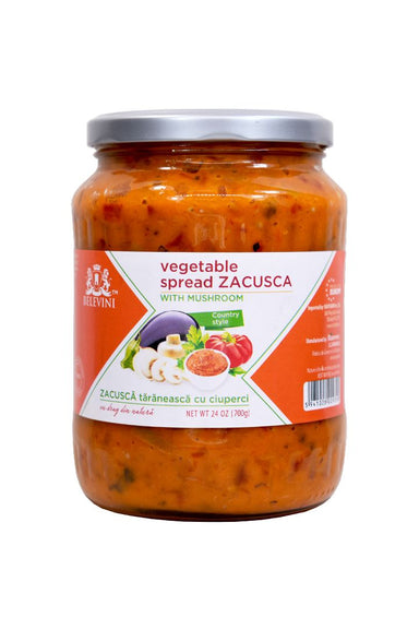 View full detailsBELEVINI - Vegetable Spread ZACUSCA with MUSHROOMS - 700g Zacusca Taraneasca cu Ciuperci Ingredients: baked eggplants (30%), bell peppers, onion...